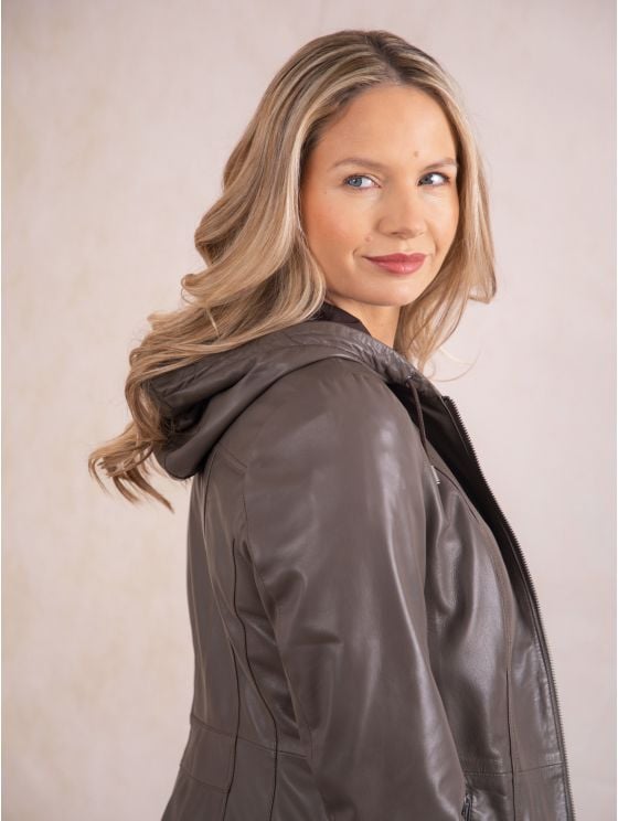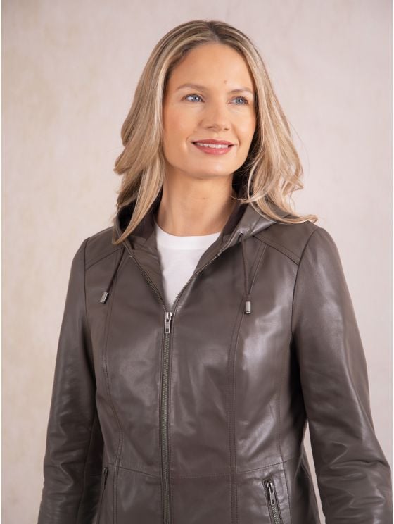 The Abbeyville is a hooded leather jacket perfect as a casual outerwear option this coming season.