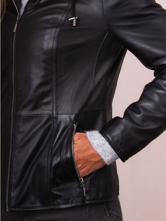Leather jackets are usually made from cowhide, sheepskin, goatskin, or lambskin. Faux leather jackets use PU or vegan leather.