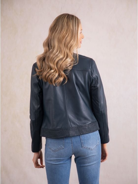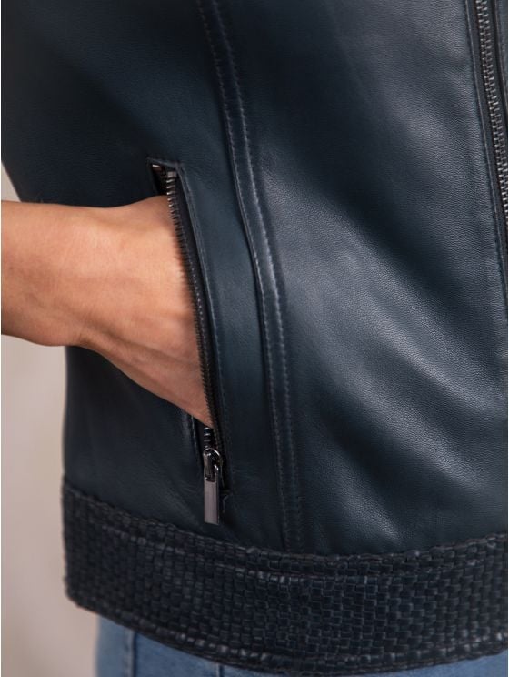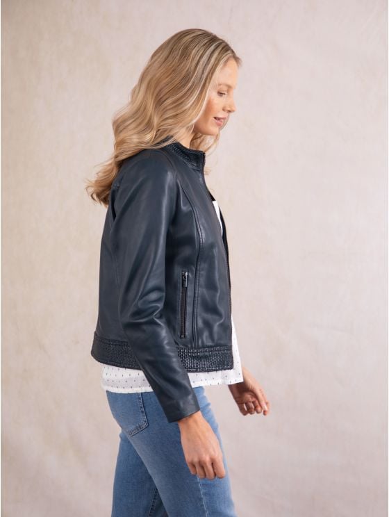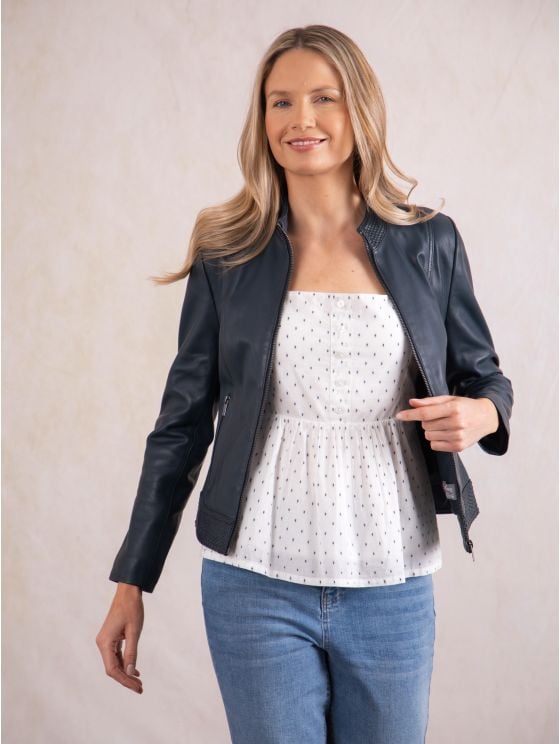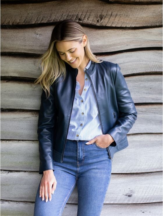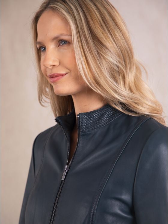 Add understated sophistication to your look with the Anthorn leather jacket. Crafted from soft nappa leather, the Anthorn features a centre zip fastening and front zip pockets for an easy and flattering wear. We love the unique woven detailing on the neck and waistline, which adds texture and interest to this subtly styled jacket.