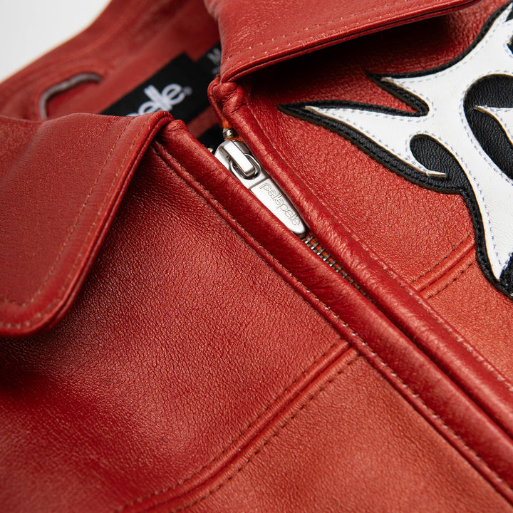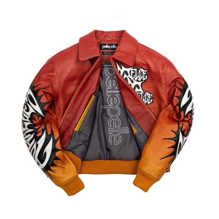 100% Genuine Gradient Leather with Custom Flame Artwork and Hand-Cut Applique