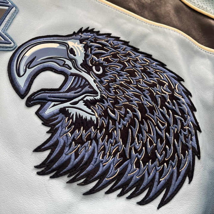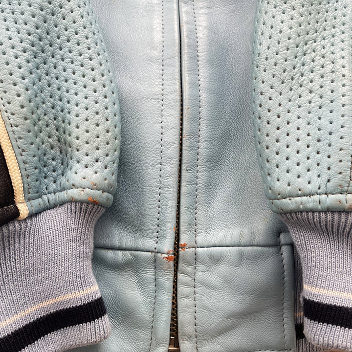 Leather jackets are usually made from cowhide, sheepskin, goatskin, or lambskin. Faux leather jackets use PU or vegan leather.