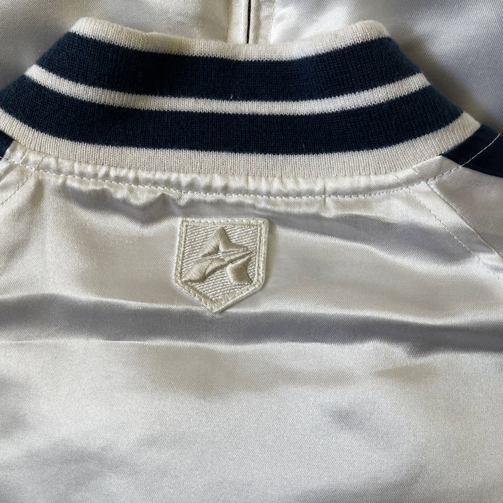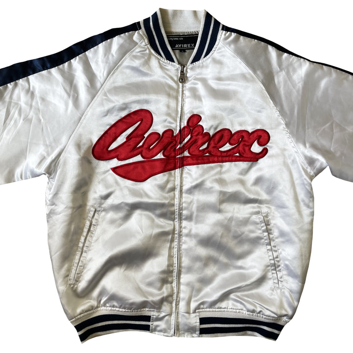 Avirex Varsity Bomber Jacket – The Avirex Varsity Bomber Jacket is a statement piece featuring the iconic Avirex spell-out on the front. With light padding for added comfort and slip-in side pockets, this jacket offers both style and practicality. The oversized fit adds a trendy, relaxed vibe, perfect for layering. In excellent condition with no flaws, this jacket is a must-have for anyone looking to add a timeless, high-quality bomber to their collection.