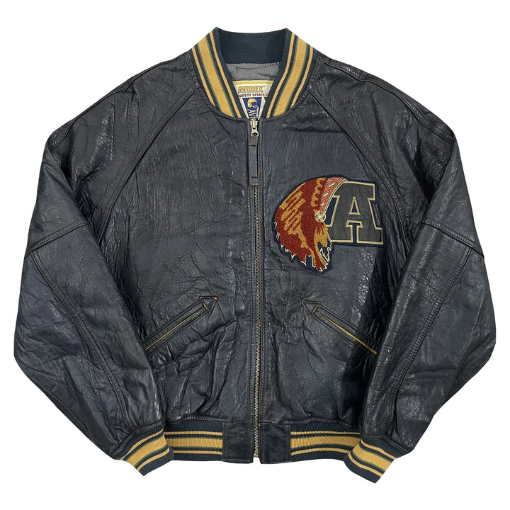 Leather jackets are usually made from cowhide, sheepskin, goatskin, or lambskin. Faux leather jackets use PU or vegan leather.