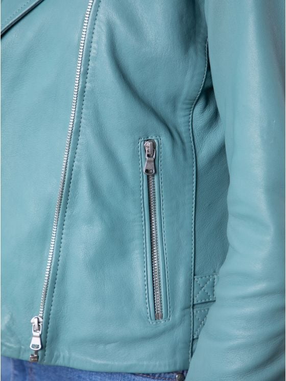Leather jackets are usually made from cowhide, sheepskin, goatskin, or lambskin. Faux leather jackets use PU or vegan leather.