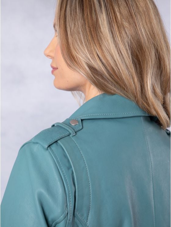 Leather jackets are usually made from cowhide, sheepskin, goatskin, or lambskin. Faux leather jackets use PU or vegan leather.