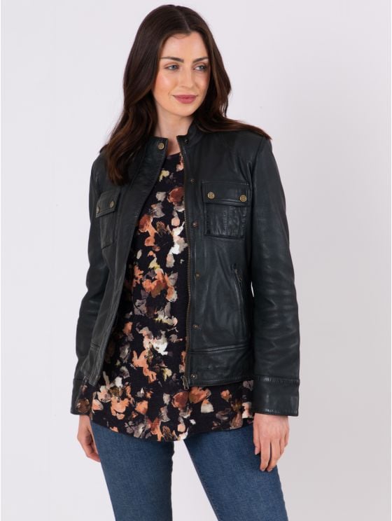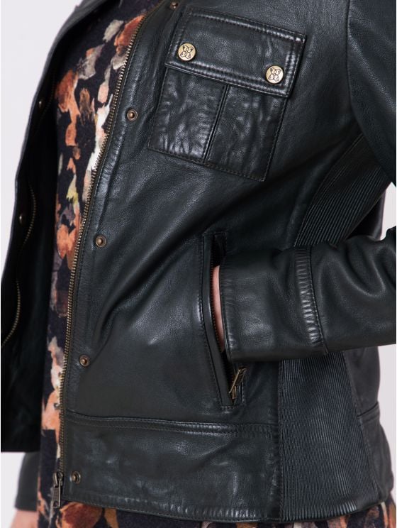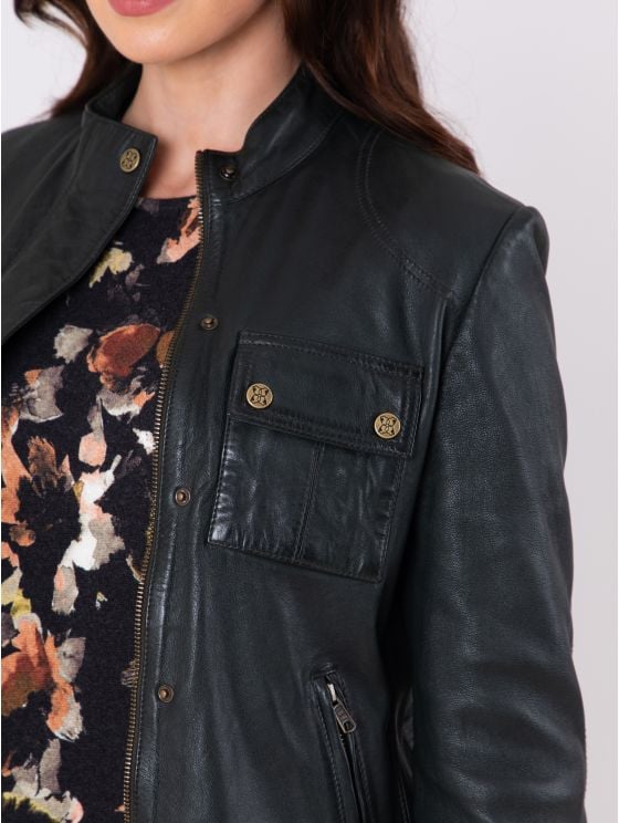 In a rich deep green, the Beetham jacket is the perfect addition to your seaonal outerwear collection. This classic jacket features practical press stud and zip pockets, shoulder stitch detailing and branded gold tone hardware for an effortlessly sophisticated look. Crafted in premium veg tanned leather, the Beetham jacket has been designed to last for years to come.