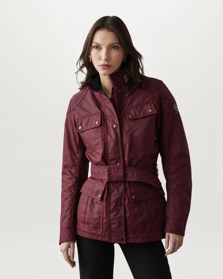 The Belstaff Trialmaster Pro Ladies Leather Jacket in Red is a high-performance jacket that combines traditional craftsmanship with modern technology for the ultimate in protection and style. Made from 8oz British Millerain technical waxed cotton, it offers outstanding durability and a sleek look. This jacket features a breathable, waterproof membrane, ensuring you stay comfortable and dry in various weather conditions.