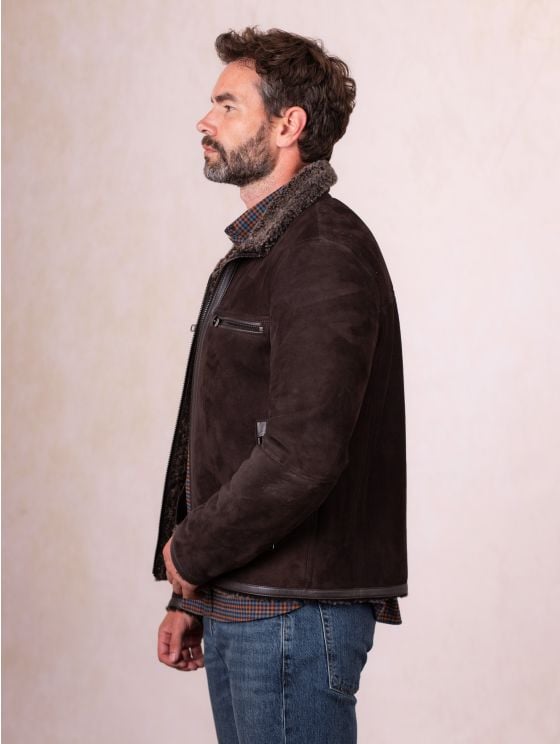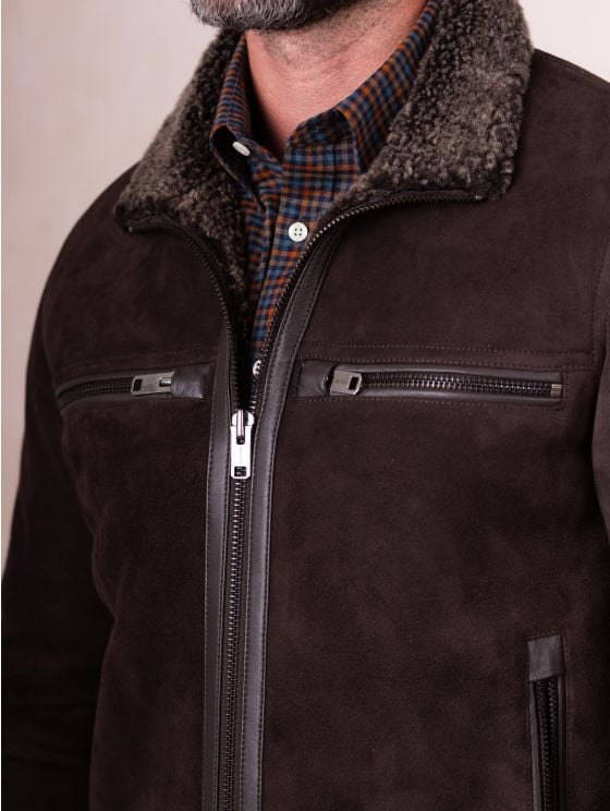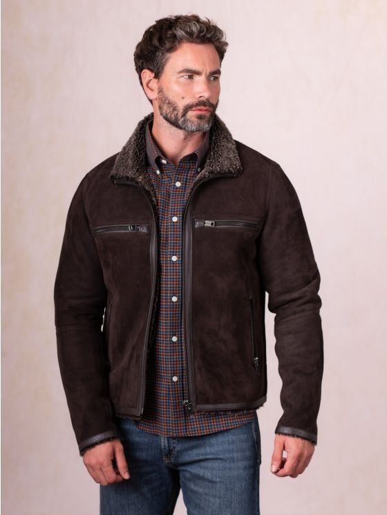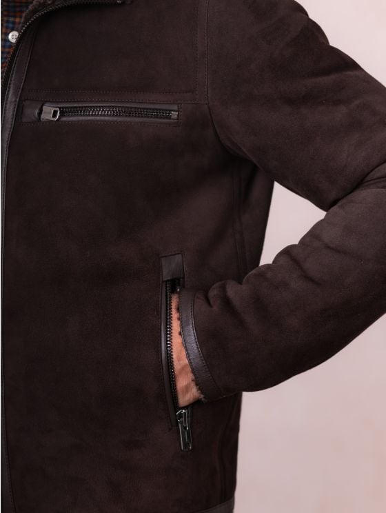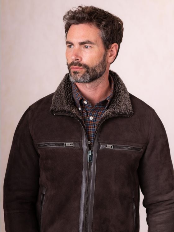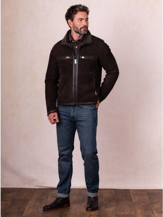 Expertly crafted from the finest quality, suede-finish sheepskin, the Buccaneer jacket offers unmatched comfort and timeless style. The centre zip fastening ensures a sleek and streamlined look, whilst the dual chest and side zip pockets combine fashion and function. This style is complete with leather trims, foldable cuffs and a stand collar which can also be folded down for a more casual look.