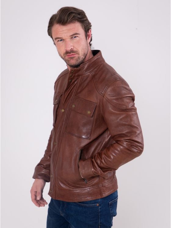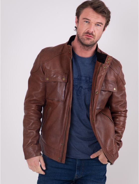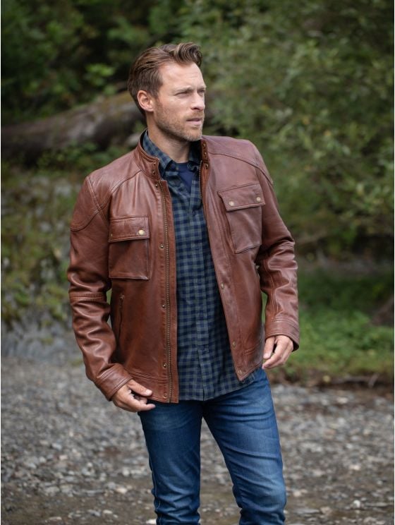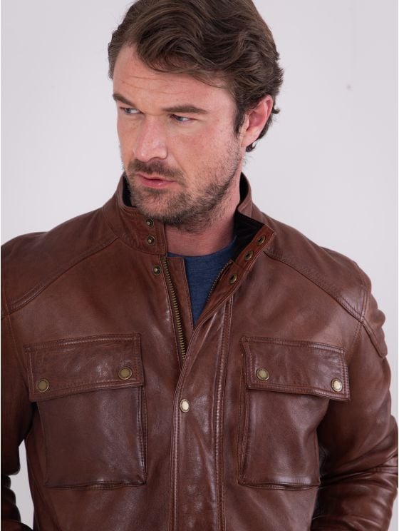 Expertly crafted from fine aniline leather, the Burnmoor jacket exudes rugged sophistication. This classic jacket features a concealed centre zip fastening with a press stud placket, as well as press stud and zip pockets for stylish practicality. Shoulder panel detailing and branded brass-tone hardware complete this timeless look.