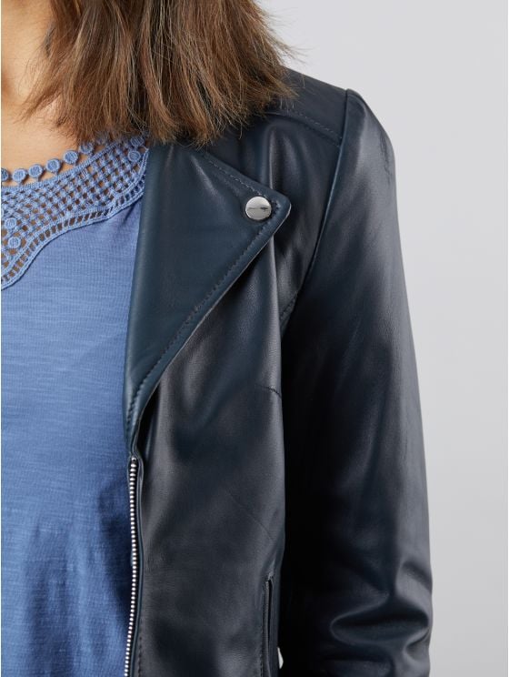 Collette Open Collar Leather Biker Jacket