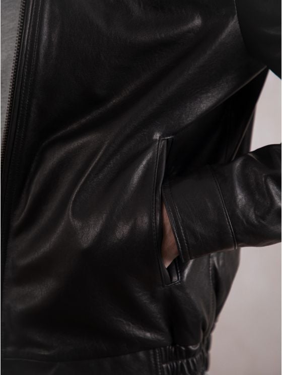 Leather jackets are usually made from cowhide, sheepskin, goatskin, or lambskin. Faux leather jackets use PU or vegan leather.
