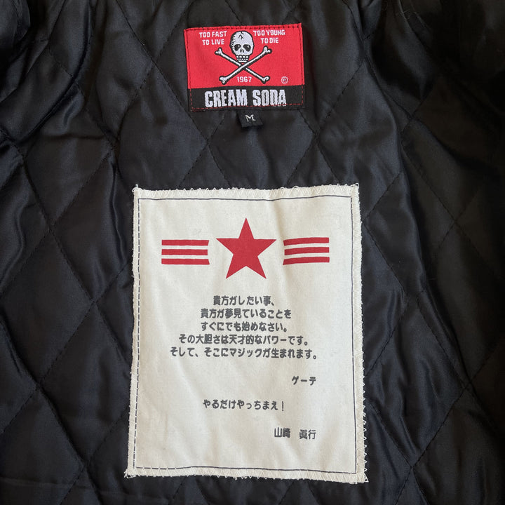 Leather jackets are usually made from cowhide, sheepskin, goatskin, or lambskin. Faux leather jackets use PU or vegan leather.