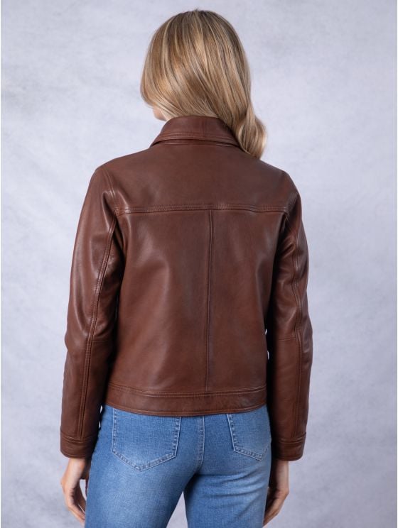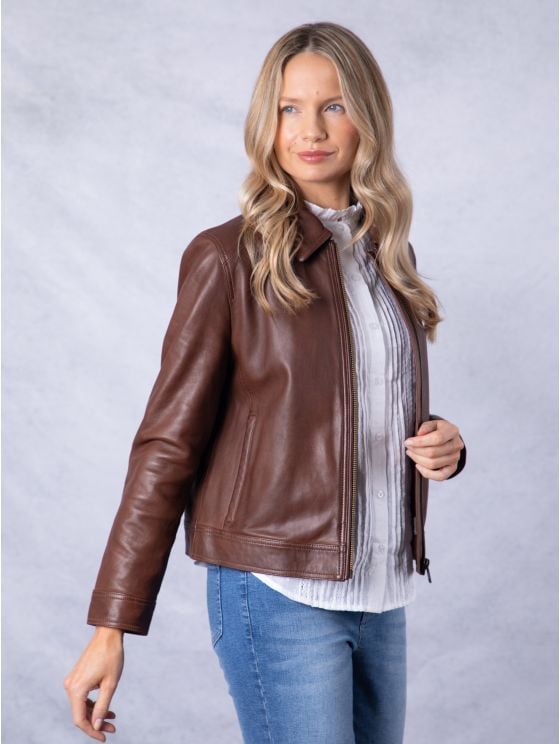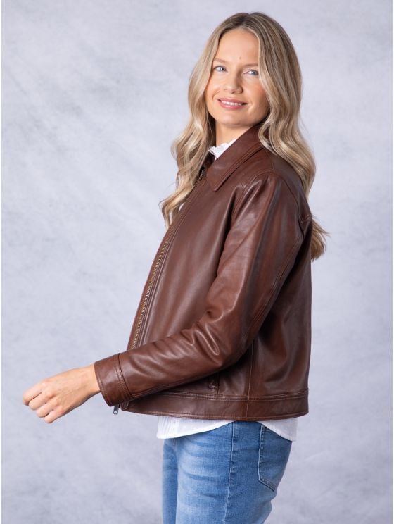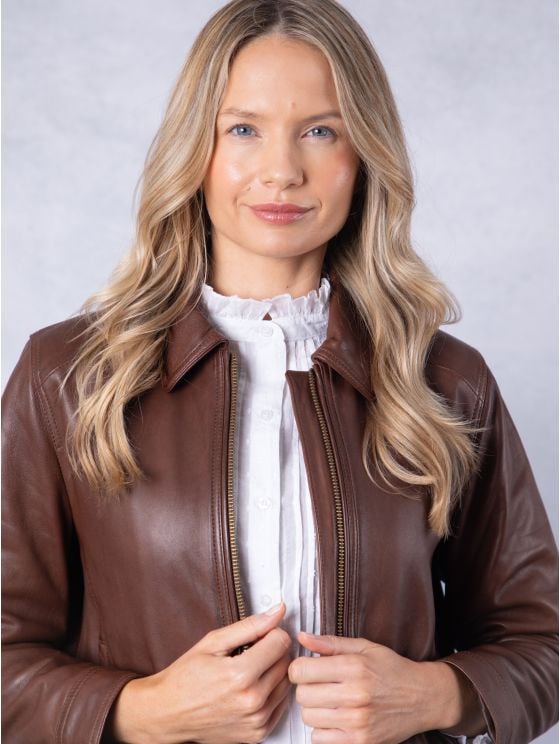 The Crosthwaite jacket is all about understated style, combining a classic collared look with a fuss-free, pared-back design. Its boxy fit and soft-touch vegetable-tanned aniline leather give it a relaxed yet refined feel. Crafted with a vintage-effect finish, this jacket carries an authentic character that only deepens with wear—a true testament to its quality. With its simple centre zip fastening and handy slip pockets, the Crosthwaite is effortlessly versatile, ready to elevate any outfit with timeless appeal.
