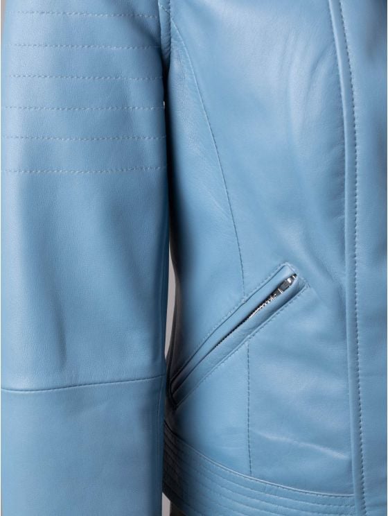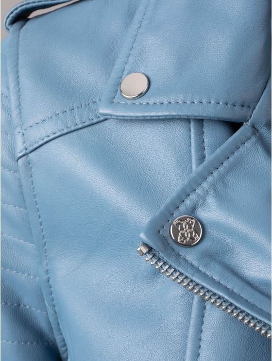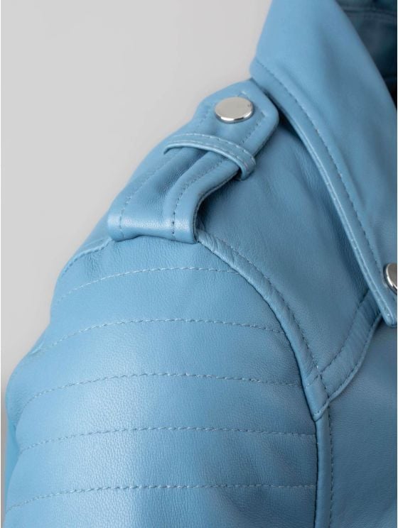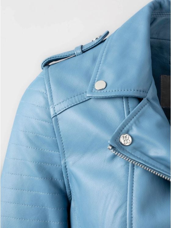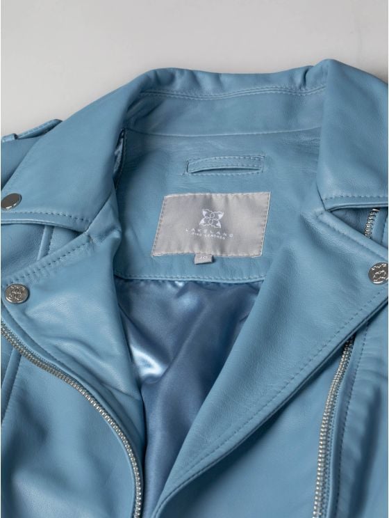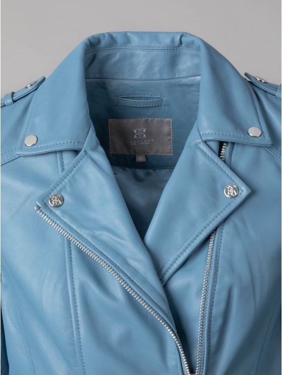Introducing our new-in Esthwaite biker jacket in a stunning sky blue hue. Made from soft nappa leather, it features an asymmetric zip, epaulettes, lapel collar, and stitching detail. Timeless and sophisticated, the Esthwaite is designed to age beautifully. Don't settle for anything less than the best, and elevate your style with the Esthwaite biker.