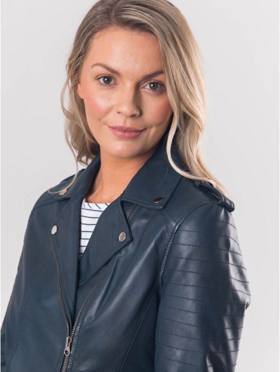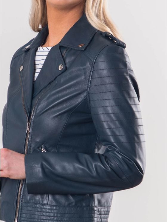Upgrade your look with the must-have Esthwaite leather biker jacket in navy, giving your outfits the perfect amount of edge. This style boasts all the traditional details of a leather biker, including asymmetric zip fastening, epaulettes, lapel collar and stitching detail. Lovingly crafted from high-quality leather, the Esthwaite is designed to age beautifully the more you wear it.