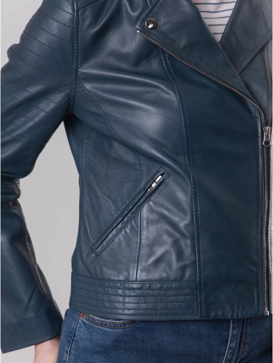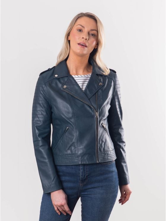 Upgrade your look with the must-have Esthwaite leather biker jacket in navy, giving your outfits the perfect amount of edge. This style boasts all the traditional details of a leather biker, including asymmetric zip fastening, epaulettes, lapel collar and stitching detail. Lovingly crafted from high-quality leather, the Esthwaite is designed to age beautifully the more you wear it.