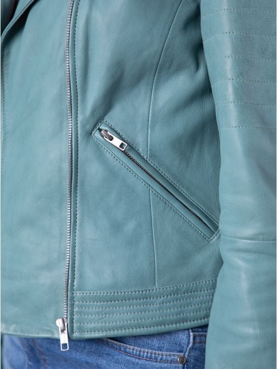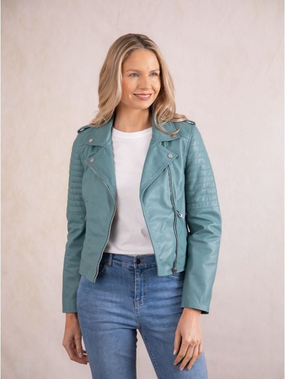 Leather jackets are usually made from cowhide, sheepskin, goatskin, or lambskin. Faux leather jackets use PU or vegan leather.