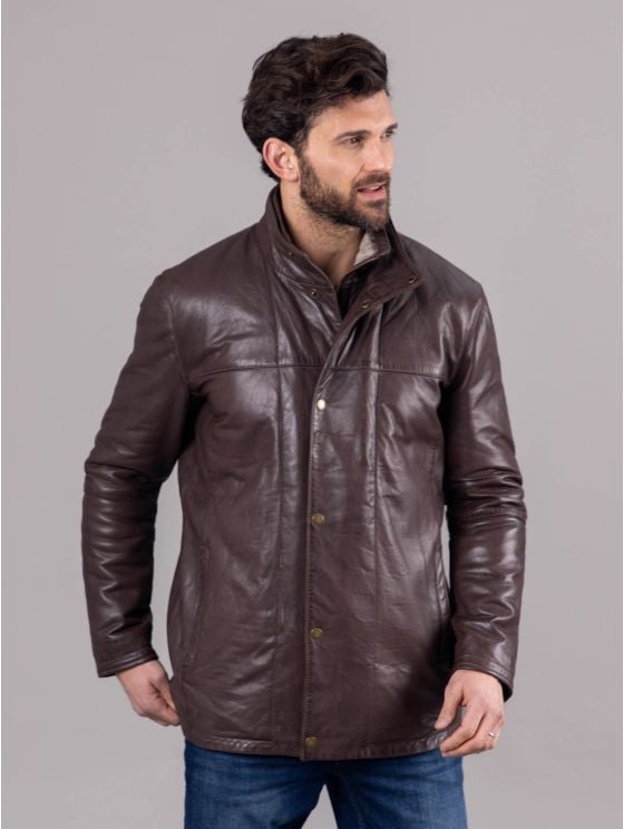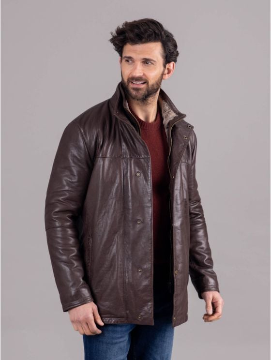 Invest in this premium leather coat for a truly timeless layer that’ll see you from season to season. Crafted from soft yet durable aniline leather in a deep brown shade, the Garstone coat is designed to develop a natural patina, meaning it’ll become more uniquely yours the more you wear it.