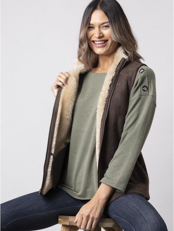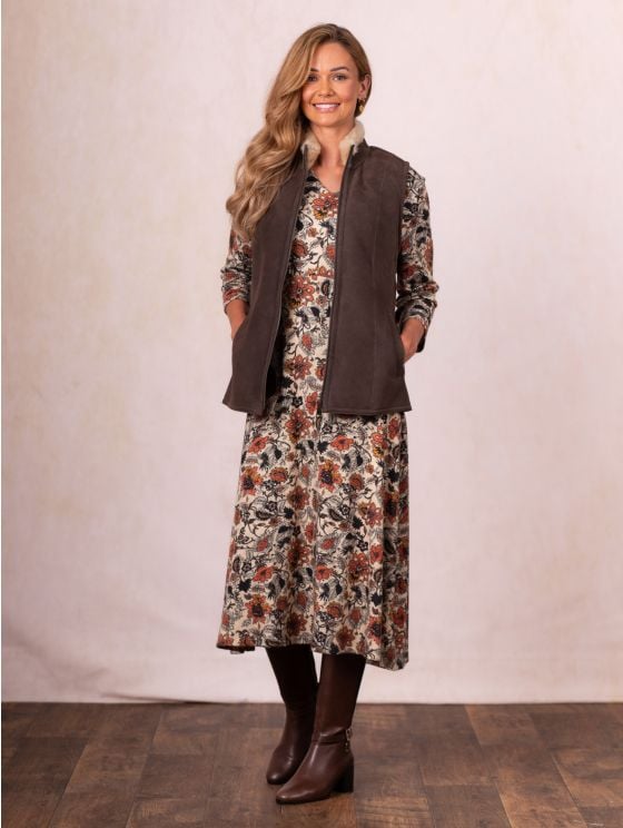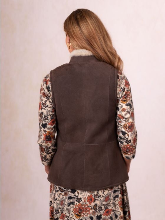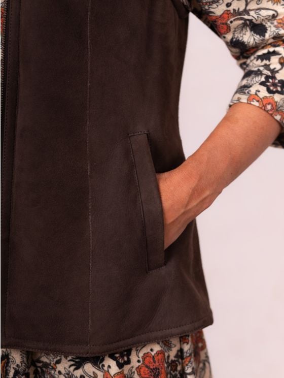 A casual classic - our Grange Sheepskin Gilet is crafted in a rich vole-brown colourway. Finished with an antique 'peached' texture it has the most characterful lustre. When it comes to touch, this gilet feels incredible, with a luxurious velvety exterior, and silky, soft, supple wool interior. As nature's best insulator, the sheepskin will undoubtably keep you warm and cosy when the temperatures drop.