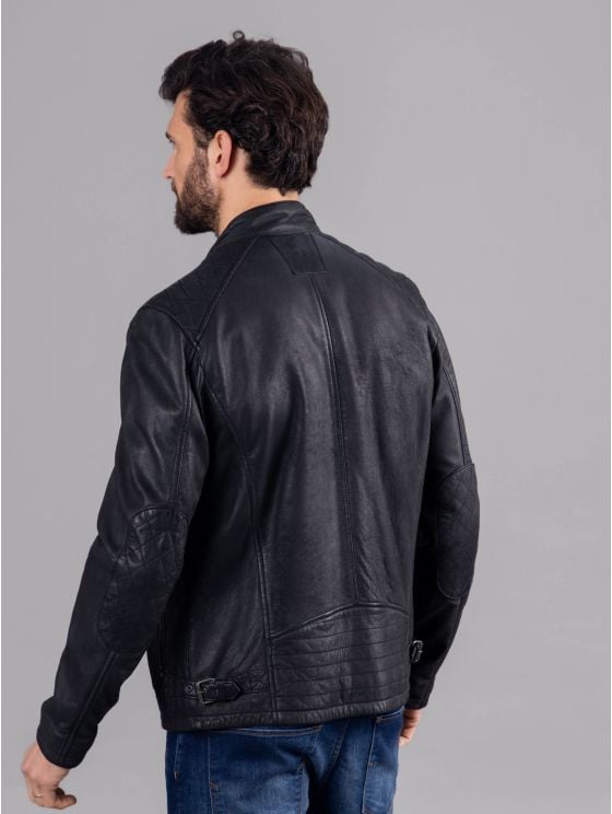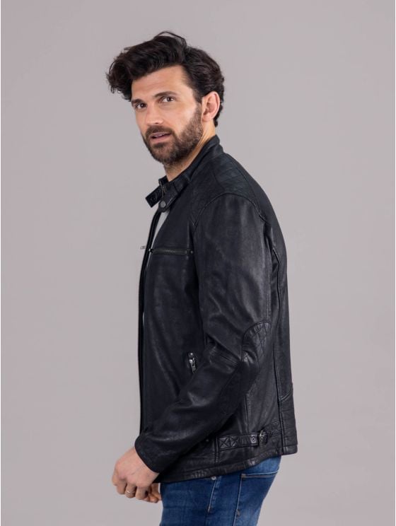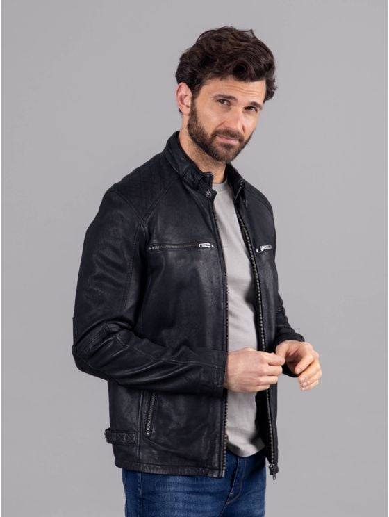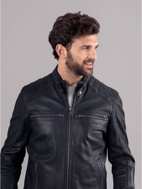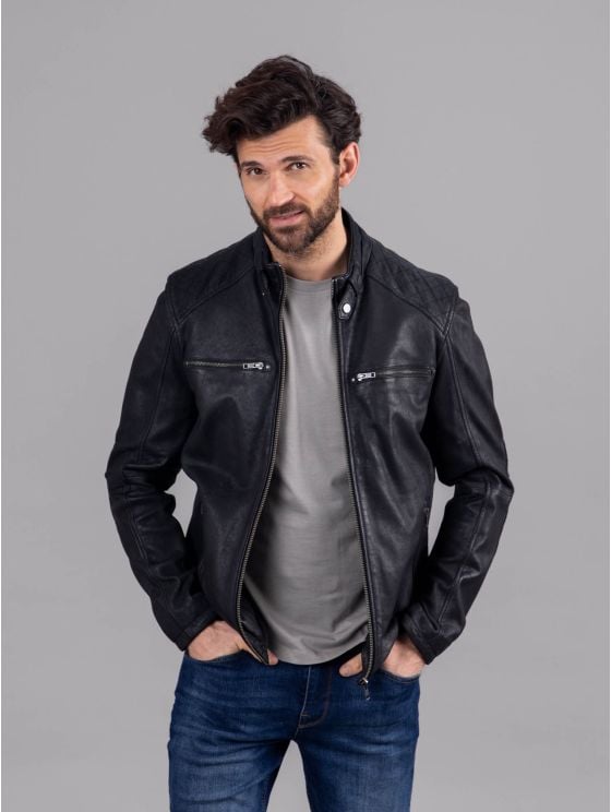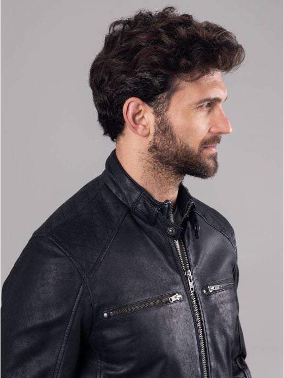 Our best-selling style, now developed in a classic black colourway; Hamish is a buffed nubuck leather jacket.