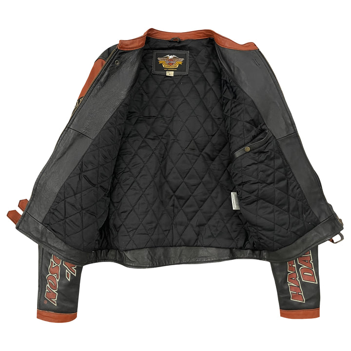 Ride with pride in the Harley Davidson Leather Racing Jacket, an essential piece for bikers and collectors alike.