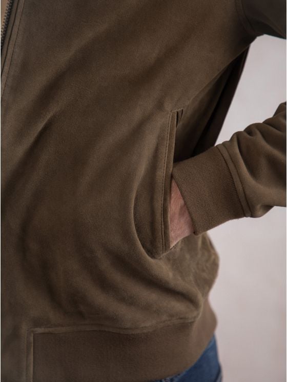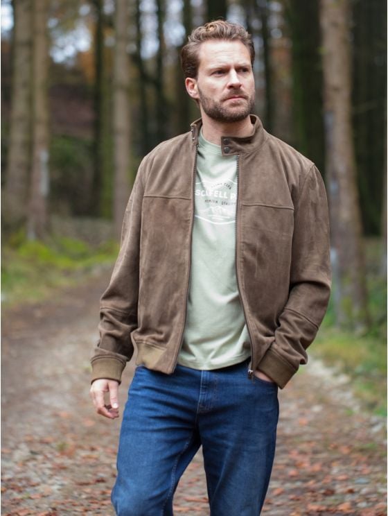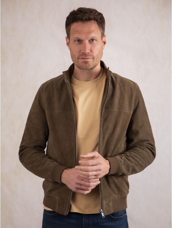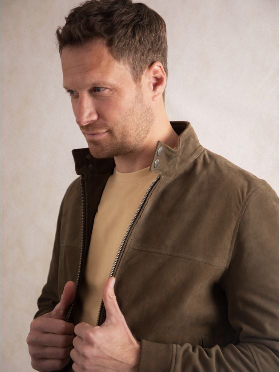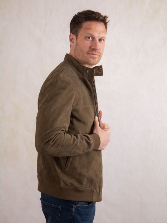 Add the lightweight Hayton jacket in moss green to your wardrobe for the perfect all-round outfit finisher. Crafted from 100% suede and cut to a sporty silhouette thanks to the comfy ribbed edging, the Hayton boasts a stand up press stud collar with centre zip fastening and plenty of inner and outer pockets. Keep it casual with a crew neck underneath or layer over a shirt to smarten up your look.
