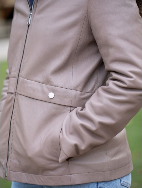 Leather jackets are usually made from cowhide, sheepskin, goatskin, or lambskin. Faux leather jackets use PU or vegan leather.