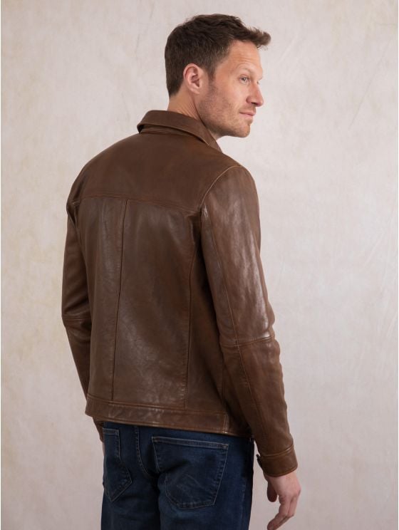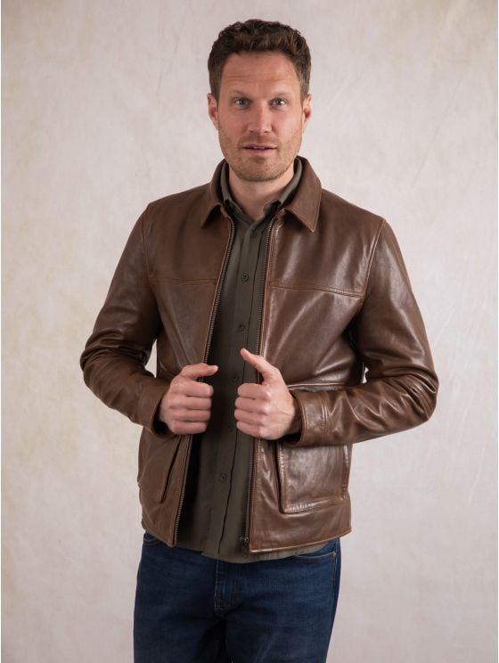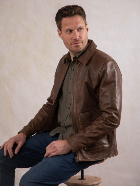Add the suave Hesket leather jacket to effortlessly elevate your wardrobe. Crafted from the highest quality vegetable tanned aniline leather that’ll get better and more unique with each wear, this rustic and earthy coconut brown jacket has been inspired by the 70s for ultimate vintage appeal. A classic collar, easy centre zip and large pockets (as well as three inner ones) make the Hesket the perfect combination of style and substance.