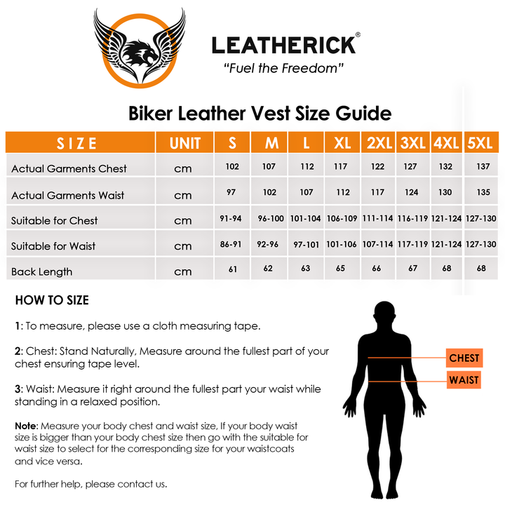 Our Leather vest provides 100% value for your money. Please follow the size chart guideline in the images section for a better understanding of your waistcoat size. Buy Confidently from Leatherick. We have served thousands of satisfied customers like you all across Europe and the UK since 2017.