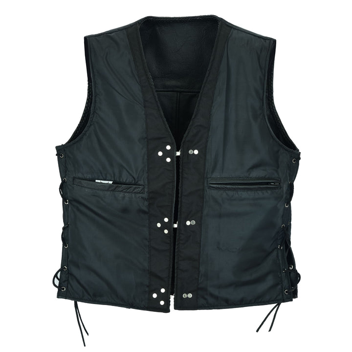 Leatherick Black Fishhook Buckle Leather Vest with Side Laces