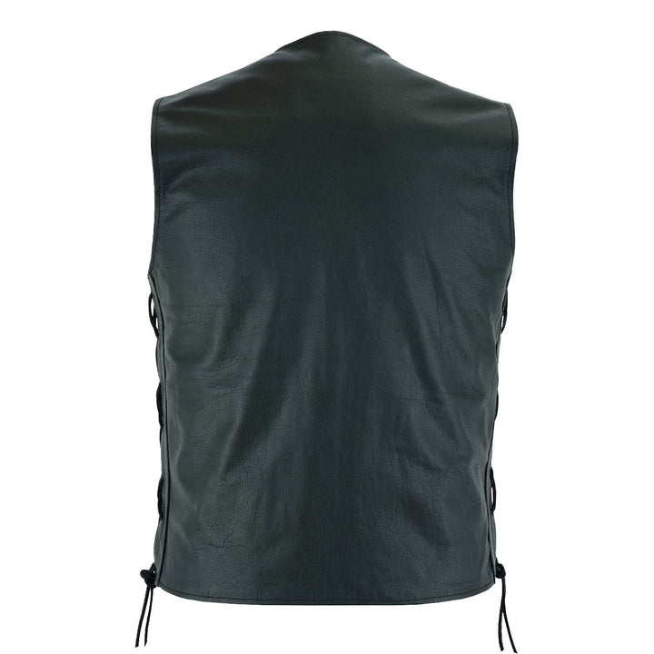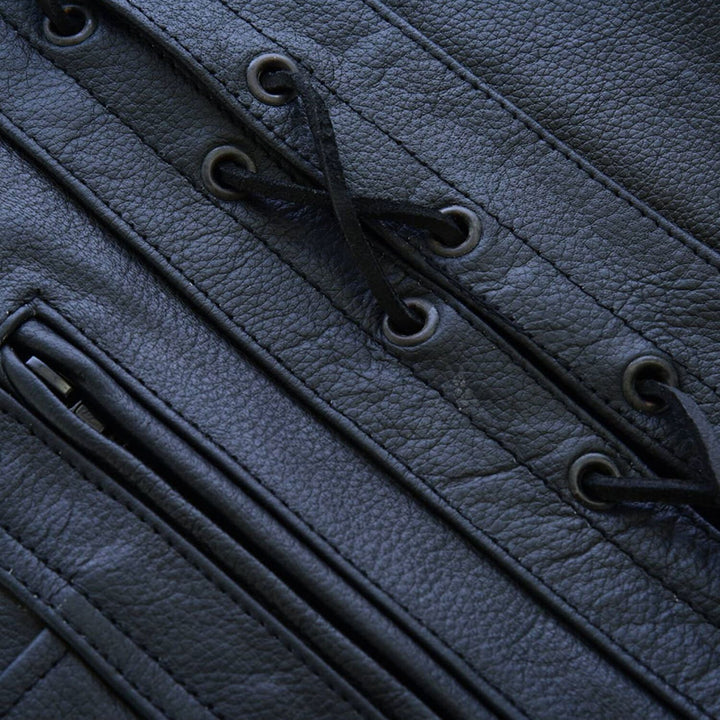 Leatherick Men Side Laces Cow Hide Real Leather Biker Vest