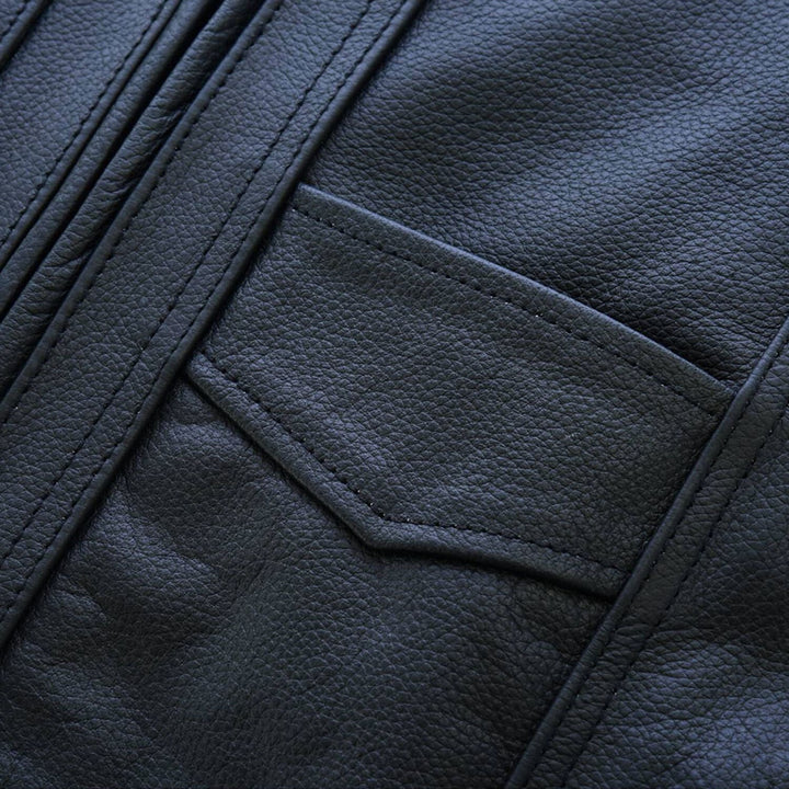 - Enough Pocket Space: This leather cut has a total of 8 pockets, 2 coin pockets on front, 2 waist zipper pockets, 2 deep concealed pockets, 1 simple pocket and 1 zipper pocket.
