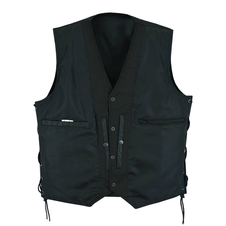 Rust resistant black metallic snaps are used at the front of the vest for closure purposes. The vest has a total of 8 pockets, 2 coin pockets, 2 waist pockets with zipper closure, 2 deep concealed pockets with snap closure, 1 simple inside pocket, and 1 inside wired zip pocket. You will get Large back panel to put logos or patches easily. Side laces enable you to loose or tighten the fit of the vest as per your requirements. It is stitched with a liner that provides complete comfort.
