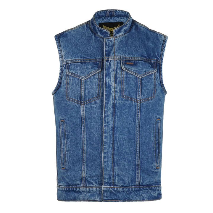 Leatherick’s Collared Biker Blue Denim Vest is a perfect Men’s Denim Vest. Our denim Vest for men made from the finest quality 100% cotton denim. The denim vest is the best choice if you are looking for a breathable and comfortable vest for long sunny rides.