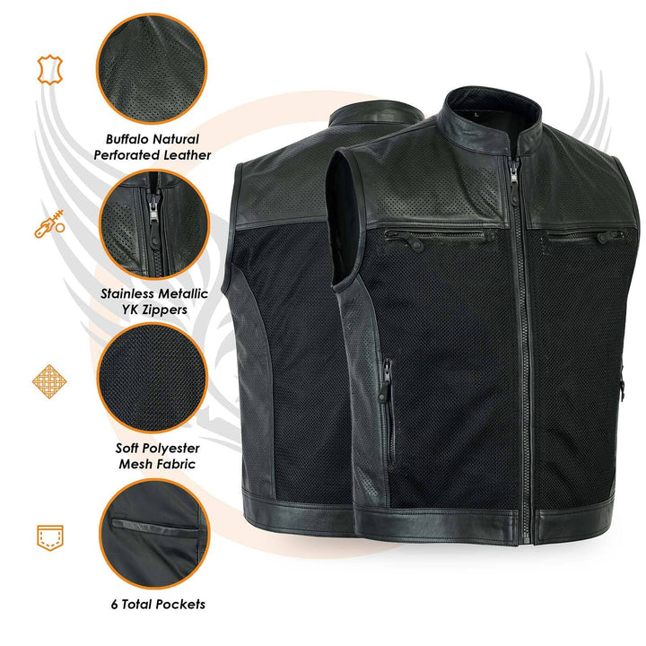 - Leather Quality: Leatherick perforated biker waistcoat is made with top-grain natural Buffalo 1.1mm leather.