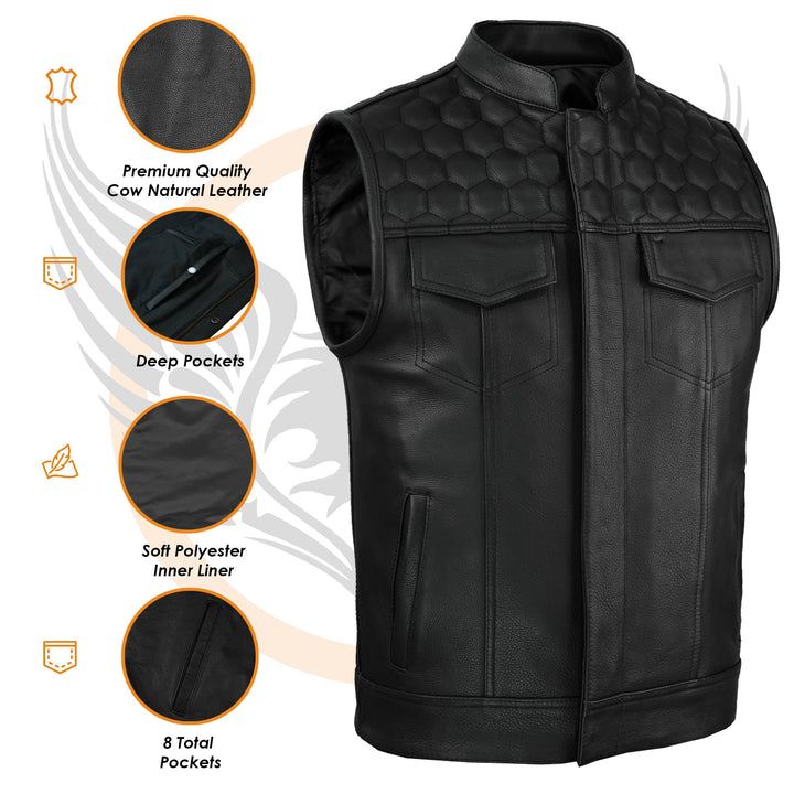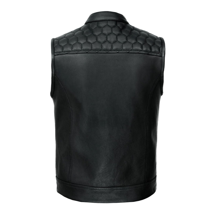 Black Honey Comb Vest: Leatherick motorcycle vest for men is expertly made with a bold black honey comb stitch design on the front and back that will give you a classic biker look.