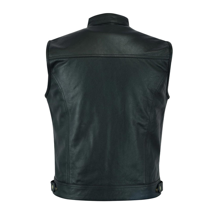 Leatherick Real Sons of Anarchy Open Button Leather Vest is the best Style Men’s Black Leather Bikers Club Vest has made from the finest quality cowhide Milled leather (Durable, Top Grain 1.1 mm). Indeed, Our Motorcycle Vest for men is the best choice if you are looking for a durable and comfortable vest for long rides.