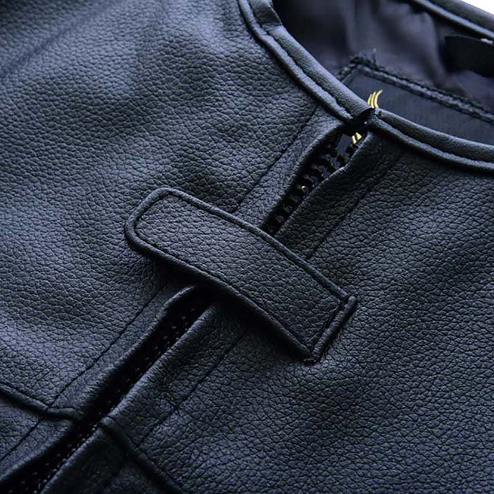 This SWAT vest comes with tactical vest accessories such as three side straps with buckles and a rust-free zipper to close the vest. The Leatherick SWAT Style Cowhide Split Biker Vest is a robust and stylish choice for bikers, offering both protection and a modern look. Made from premium cowhide split leather, this vest ensures durability and long-lasting wear. It features a secure front zipper closure with an additional snap-button at the collar for added security. The vest is designed with adjustable side straps, allowing for a customizable and comfortable fit. It includes practical zippered pockets for convenient storage of essentials. Combining functionality with a sleek, tactical design, this vest is perfect for bikers seeking a blend of practicality and contemporary style.