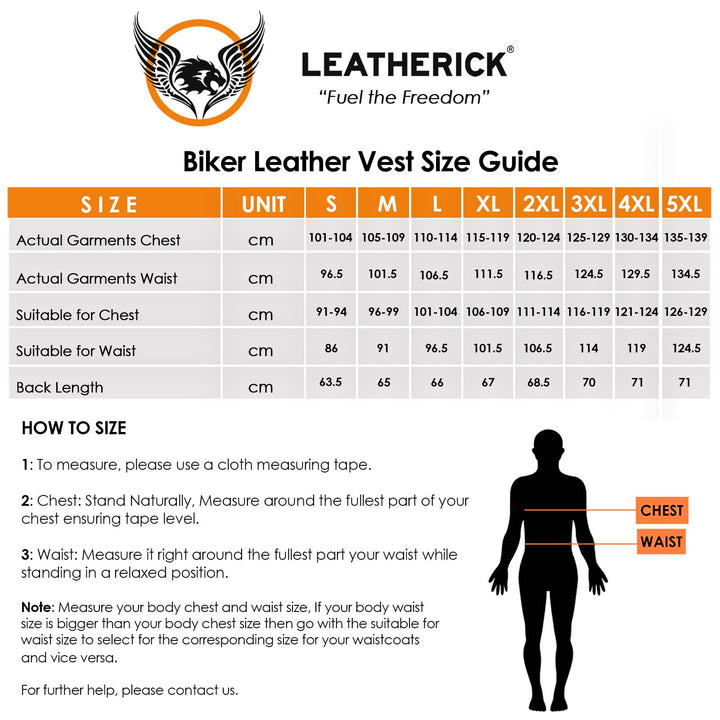 On the whole, Our Tactical leather Motorcycle vest provides 100% value for your money. Please follow the size chart guideline in the images section for a better understanding of your waistcoat size. Buy Confidently from Leatherick. We have served thousands of satisfied customers like you all across Europe and the UK since 2017.