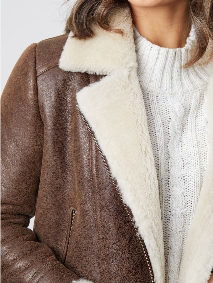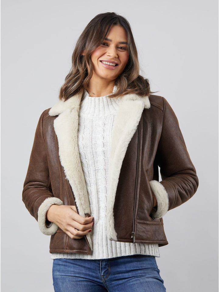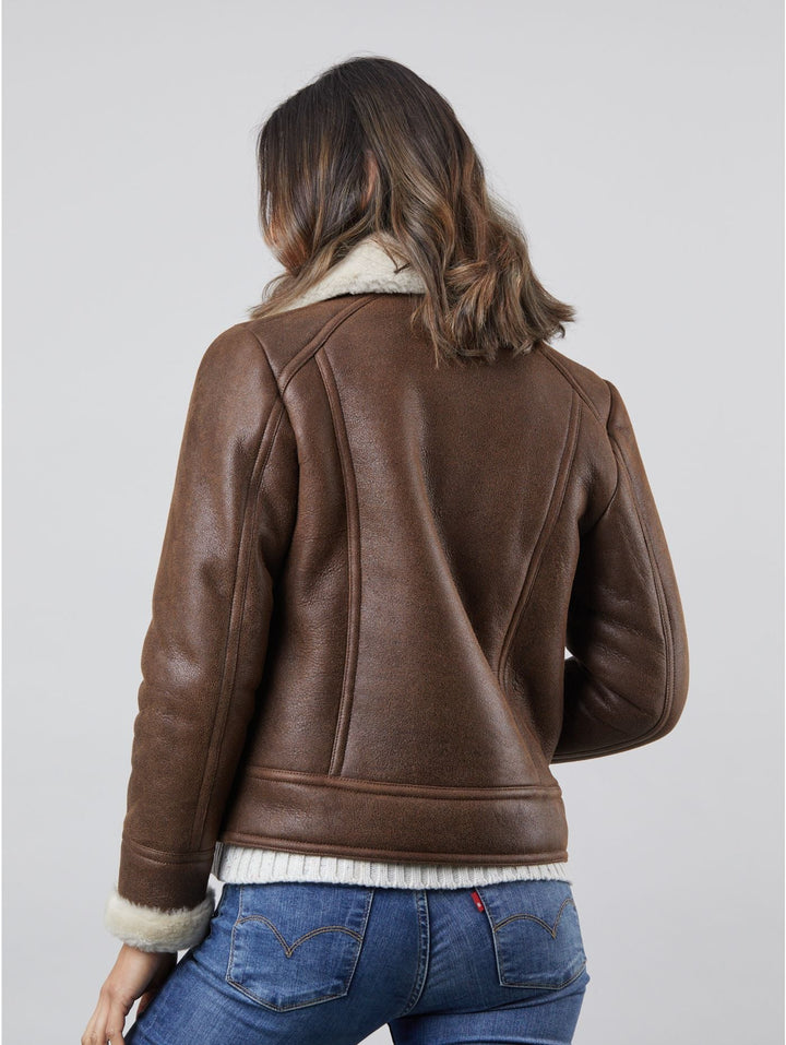 Lindeth Sheepskin Aviator Jacket – 100% Real Sheepskin | Chocolate Brown | Free Worldwide Delivery