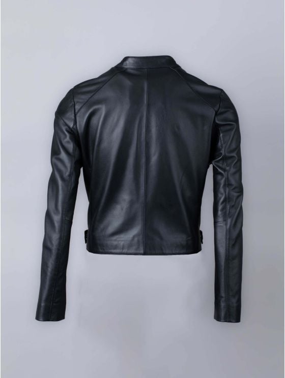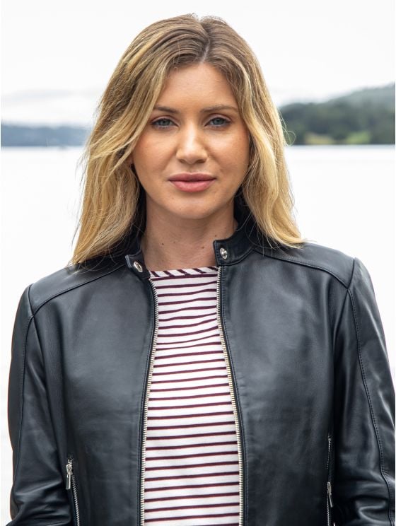 Crafted from smooth leather, the Lowestone jacket is shaped to a cropped silhouette, perfect for styling with dresses or high waisted trousers. This simple and chic jacket features a press stud collar, front zip pockets and side buckles for a dash of biker style. We've chosen silver-toned metalware to contrast against the black leather for the perfect blend of sophistication and attitude.