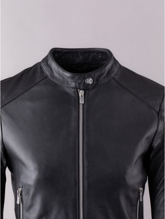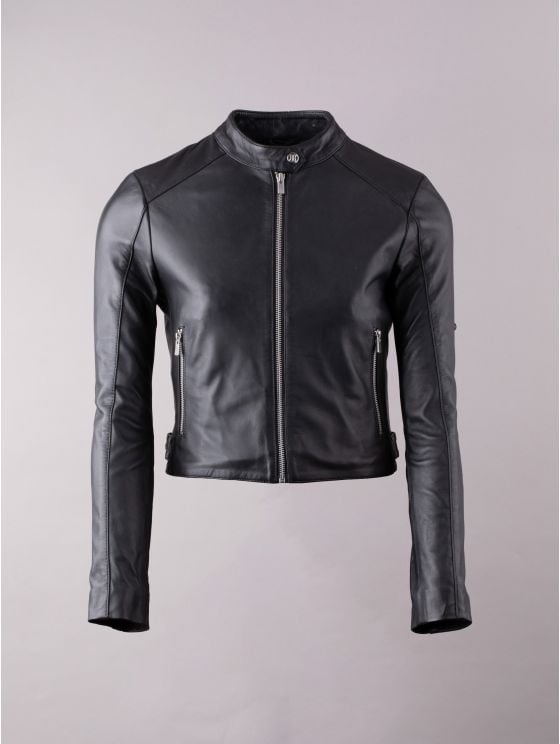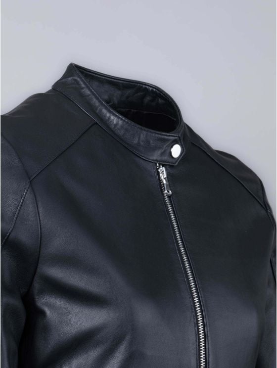 Crafted from smooth leather, the Lowestone jacket is shaped to a cropped silhouette, perfect for styling with dresses or high waisted trousers. This simple and chic jacket features a press stud collar, front zip pockets and side buckles for a dash of biker style. We've chosen silver-toned metalware to contrast against the black leather for the perfect blend of sophistication and attitude.