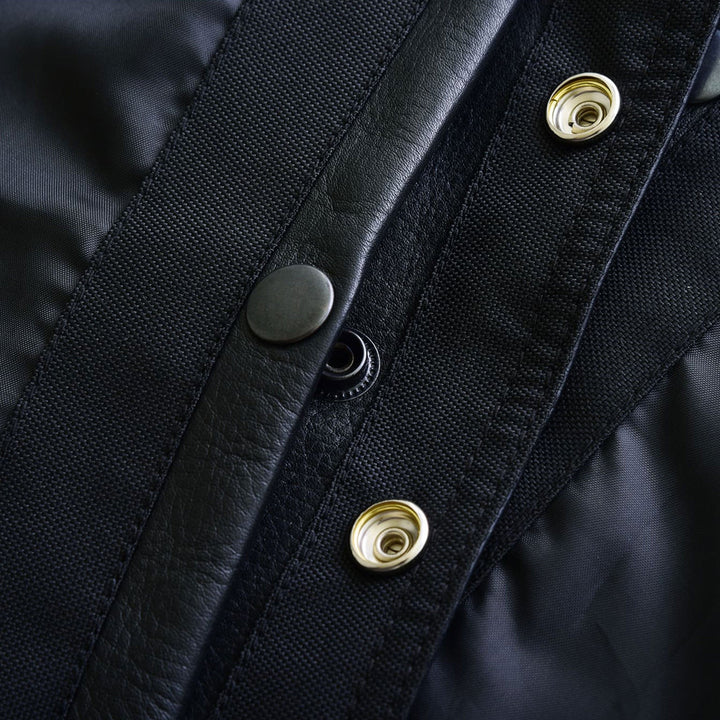 Leather jackets are usually made from cowhide, sheepskin, goatskin, or lambskin. Faux leather jackets use PU or vegan leather.