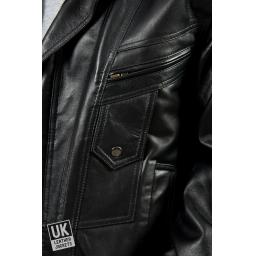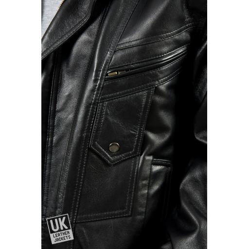 A classic mens black leather jacket with 4 outer pockets and 2 inside pockets, the zip through collar can be worn up or down. View testimonials and price offers. Free UK delivery.