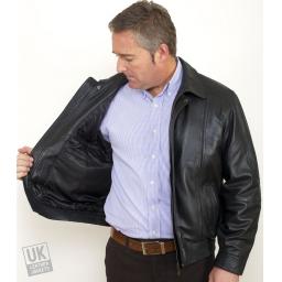 This mens black leather jacket offers in superior soft nappa a classic blouson zip design. Timelessly smart and comfort wear style for all occasions, available in sizes XS to XS.
