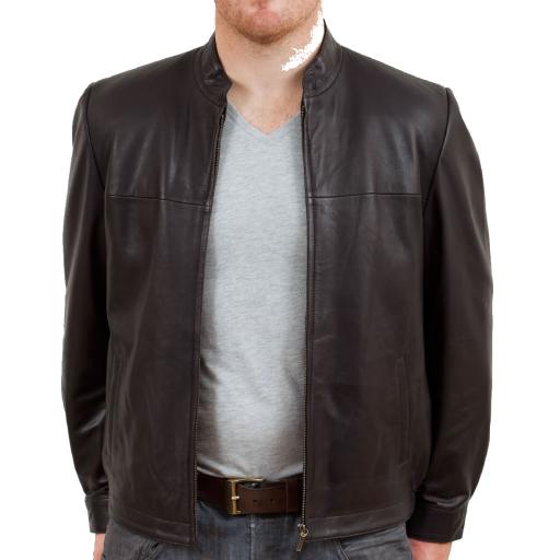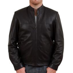 A classic blouson style mens black leather jacket with short stand-up collar, crafted in high grade soft sheep nappa leather. View range of styles in sizes XS to XS at reduced prices.