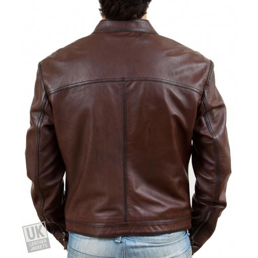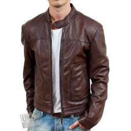 A minimalist style mens brown leather jacket crafted in a superior quality soft sheep nappa leather, choose from regular, short or long sleeve length fitting. Free UK delivery. British firm and staff.