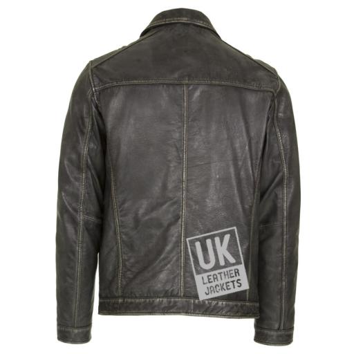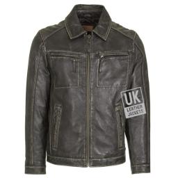 Crafted in superior quality vintage toned distressed finished black leather, this mens zip leather jacket features 4 zip pockets,fold down shirt style collar, plus 2 inside pockets. Free UK delivery.