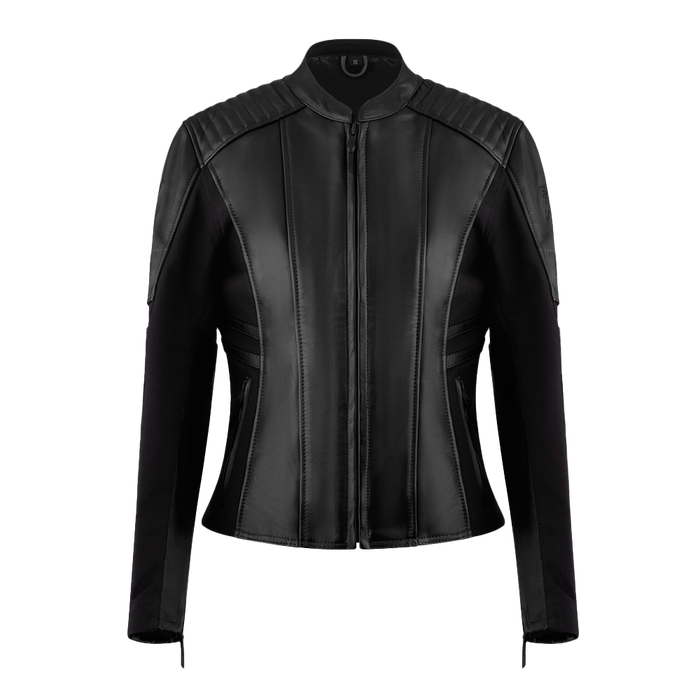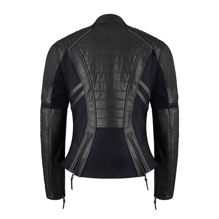 MotoGirl Amelia Leather Jacket – Stylish Black Jacket with Stretch Panels for Comfort & Safety