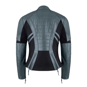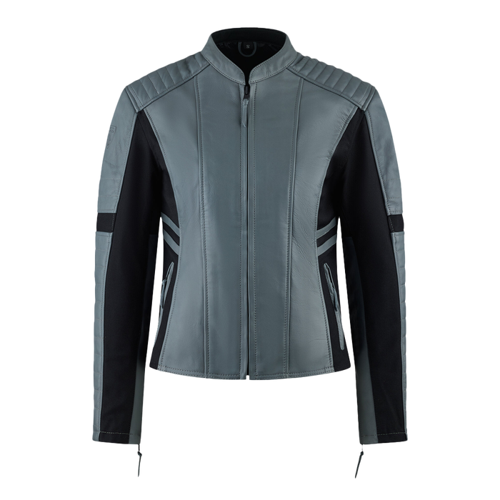 MotoGirl Amelia Leather Jacket – Grey with CE Protection & Stretch Panels for Comfort